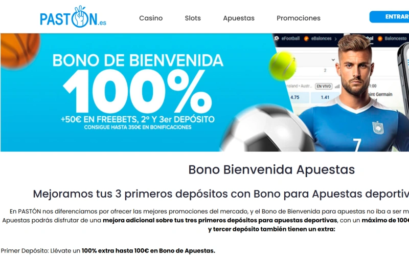Paston funciona como una plataforma de apuestas deportivas y casino online que opera con licencia oficial en España. Para comenzar, solo necesitas registrarte en su página web, verificar tu cuenta y realizar un depósito mediante los métodos de pago disponibles. Una vez completado este proceso, podrás acceder a las apuestas deportivas y juegos del Paston casino online de forma segura y legal desde cualquier dispositivo con conexión a internet.
